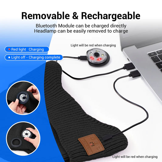 Bluetooth Beanie Hat with Light, Built-in Wireless Headphones LED Light - USB Rechargeable Bluetooth Hat